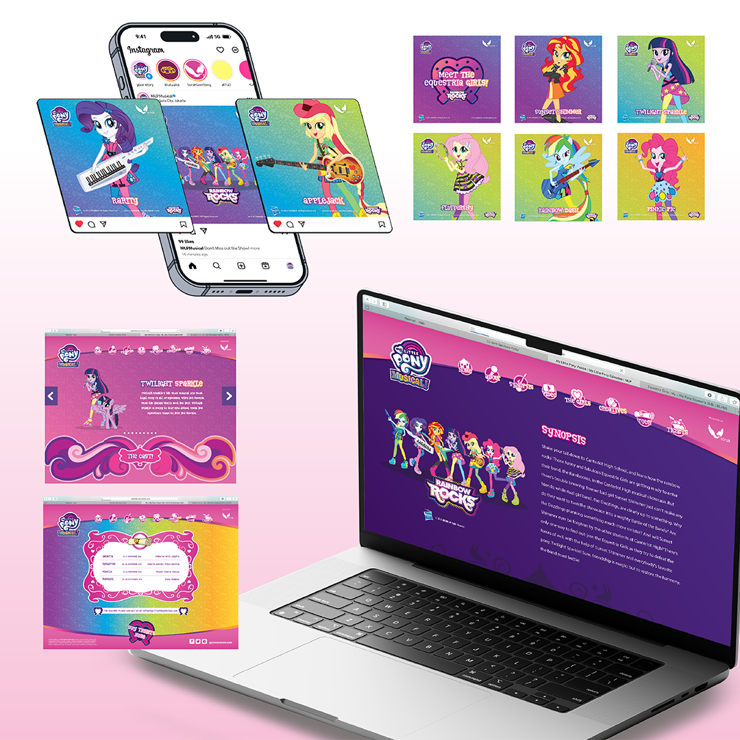 My Little Pony Musical is a live stage theater production (often titled Rainbow Rocks) that adapts the popular franchise by Hasbro. The show features characters from My Little Pony: Friendship Is Magic, reimagined in their human forms as seen in the Equestria Girls universe, bringing the beloved animated series to life through music, dance, and theatrical performance.